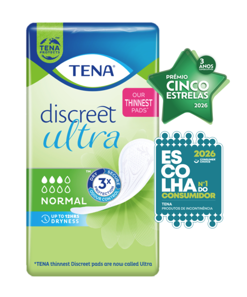 O TENA Discreet Normal Penso Ultra proporciona uma proteção fina, discreta e segura para perdas urinárias ligeiras que ninguém irá notar. Os pensos são ligeiramente maiores do que os pensos TENA Discreet Mini Pensos Ultra para lhe dar uma proteção adicional. Graças à Tripla Proteção da TENA, as perdas, odores e humidade são afastados de forma eficaz, garantindo uma secura duradoura até 12 horas. Sinta-se confiante e fresca durante todo o dia.