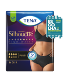 Roupa interior discreta de cintura alta que proporciona proteção total para perdas de urina moderadas a intensas.