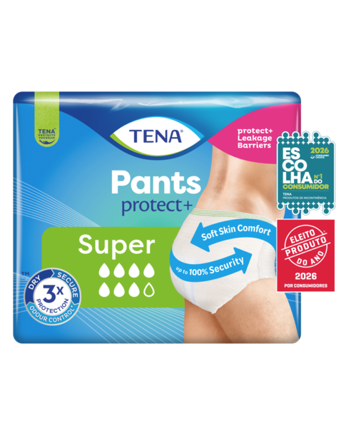 As TENA Pants protect+ são cuecas excecionais unissexo para incontinência, que proporcionam até 100% de segurança contra perdas moderadas a intensas. A rápida absorção, elevada proteção e máximo conforto asseguram um dia sem interrupções. A nossa gama de cuecas mais absorvente de sempre; são as cuecas descartáveis de confiança para incontinência para um estilo de vida quotidiano ativo, concebidas para utilização diária por mulheres e homens.