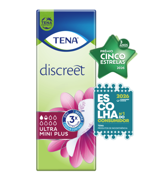 TENA Discreet Ultra Mini Plus é um penso diário extra longo para problemas urinários que proporciona proteção discreta para mulheres com perdas de urina ligeiras que ocorrem enquanto desfrutam de atividades ou mesmo quando tossem ou espirram. Foi criado para ser muito mais absorvente do que um penso diário normal e inclui tecnologia microPROTEX™ concebida para reter instantaneamente o odor e a humidade. Porque a discrição é tão importante como a segurança.