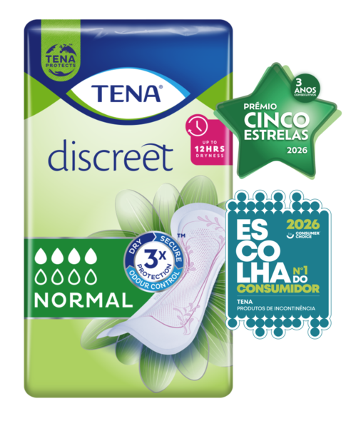 O TENA Discreet Normal proporciona uma proteção discreta e segura para incontinência moderada. O penso suave tem uma forma anatómica com laterais elásticas e é concebido para mulheres com a bexiga sensível, proporcionando uma absorção excecional e uma proteção discreta todos os dias. Graças à Tripla Proteção da TENA, as perdas, odores e humidade são afastados de forma eficaz, garantindo uma secura duradoura até 12 horas. O TENA Discreet Normal é ideal para mulheres com perdas urinárias, para que se possam sentir confiantes, com a segurança e discrição necessárias.