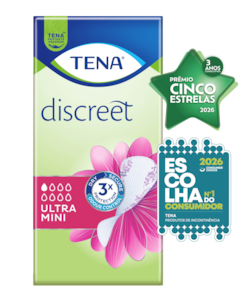 O penso diário para incontinência TENA Discreet Ultra Mini é ultra fino mas super absorvente proporcionando uma proteção discreta e segura ao lidar com perdas de urina ligeiras e gotas ocasionais. É tão pequeno como um penso diário normal mas bastante mais absorvente graças à tecnologia microPROTEX™ que retém rapidamente a urina. O penso diário para incontinência fino e seguro previne imediatamente as fugas e odores, mantendo-a fresca durante todo o dia.