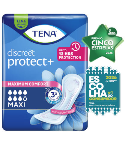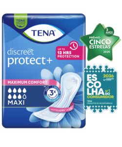 Procura um penso no qual possa confiar para lidar de forma eficaz com perdas mais intensas? O TENA Discreet Protect+ Maxi é o penso para incontinência discreto e ideal para mulheres com incontinência intensa. Este penso também pode ser usado de forma eficaz em situações de pós-parto ou pós-cirurgia. A zona instaDRY™ absorve o líquido em segundos, com um núcleo super absorvente que bloqueia as perdas mais intensas no interior do penso, proporcionando até 12 horas de proteção. Sinta-se descontraída e segura, sabendo que estará protegida durante todo o dia, graças à segurança máxima que estes pensos proporcionam. A eficácia não é comprometida, sendo que estes pensos são concebidos com materiais suaves e respiráveis e uma forma que se adapta ao corpo, proporcionando máximo conforto e proteção à medida que o dia avança.