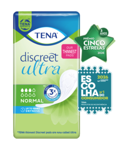 Os nossos pensos TENA Discreet mais finos que proporcionam uma proteção discreta e segura para perdas urinárias ligeiras