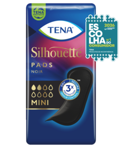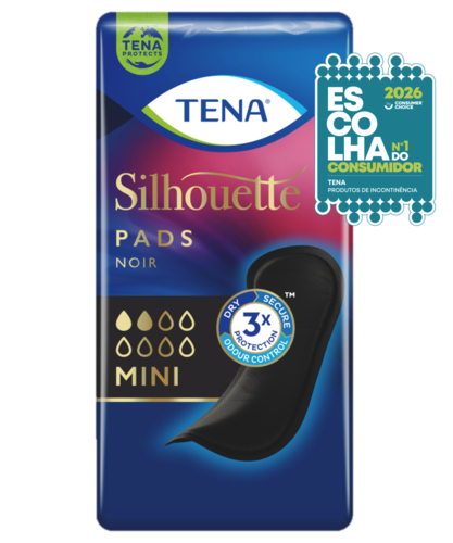 Os pensos para incontinência TENA Silhouette Noir Mini são especialmente desenhados para roupa interior preta, para uma discrição impressionante para mulheres com problemas urinários ligeiros. Quer esteja no ginásio a mudar de roupa ou em casa no seu quarto, com os pensos TENA Silhouette pode despir-se com confiança. É fino e preto para combinar na perfeição com a roupa interior preta, por isso, nem notará que o está a usar. O TENA Silhouette Noir Mini tem tripla proteção contra perdas, odores e humidade para garantir que as gotas e pequenas perdas de urina são rapidamente absorvidas para o interior do penso. É dermatologicamente testado e não contém perfumes. Invisível na sua roupa interior. Protege como TENA.