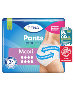 Seguras, secas e com controlo de odores* graças à tecnologia de redução do efeito do amoníaco, as TENA Pants protect+ proporcionam conforto, proteção e confiança máximas necessárias para uma vida quotidiana ativa. Complemente as suas TENA Pants protect+ Day com as TENA Pants protect+ Night para proteção total durante o dia e durante a noite.