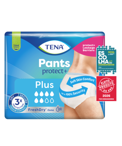 As TENA Pants protect+ são cuecas para incontinência superiores, unissexo que proporcionam até 100% de segurança contra perdas moderadas a intensas. Absorção rápida, proteção máxima, e máximo conforto asseguram um dia sem interrupções. A nossa gama de cuecas mais absorvente de sempre; são as cuecas descartáveis para incontinência de confiança para um estilo de vida quotidiano ativo, feitas para utilização diária por mulheres e homens.