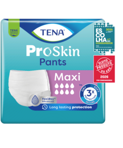 As TENA ProSkin Pants Maxi são cuecas para incontinência que proporcionam até 100% de segurança contra perdas moderadas a intensas, com absorção rápida, para se manterem secas mais tempo e utilizar durante o dia ou a noite. São as cuecas descartáveis para incontinência de confiança para um estilo de vida quotidiano ativo, feitas para utilização diária por mulheres e homens.