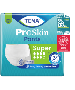 As TENA ProSkin Pants Super são cuecas para incontinência que proporcionam até 100% de segurança contra perdas moderadas a intensas, com absorção rápida, para se manterem secas mais tempo e utilizar durante o dia ou a noite. São as cuecas descartáveis para incontinência de confiança para um estilo de vida quotidiano ativo, feitas para utilização diária por mulheres e homens.