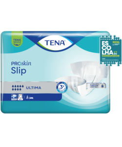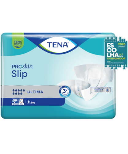 TENA Slip Ultima é um produto para incontinência aberto tudo-em-um com abas ajustáveis para um ajuste perfeito, conforto e proteção contra perdas. Ao contrário de muitas fraldas normais para adultos, TENA ProSkin Slip tem um material suave semelhante a tecido, ajuste adequado ao corpo, elevada segurança contra perdas e é ideal para alguém com menos mobilidade ou para mudar na cama. Graças à funcionalidade FeelDry Advanced™, o produto afasta rapidamente o líquido da superfície, mantendo a pele seca. O núcleo ultra absorvente retém rapidamente a urina, mesmo em grandes quantidades, para que se sinta seco, e a camada inferior totalmente respirável ConfioAir™ permite que a pele respire. Todas estas características ajudam a manter a saúde natural da pele. O design aberto com abas aderentes fortes permite uma mudança fácil estando sentado ou deitado, sendo que estas podem ser facilmente apertadas e ajustadas para um ajuste perfeito e seguro. Para uma maior frescura, o produto apresenta um neutralizador de odores e um indicador de humidade, que indica quando é o momento de mudar. TENA Slip Ultima é adequado para esvaziamento repentino e completo da bexiga, bem como para utilização durante a noite. TENA ProSkin Slip está disponível numa grande variedade de tamanhos e níveis de absorção.